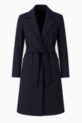 Knielanges Kleid aus WollcrêpeLanger Mantel aus Wollcrêpe mit Bindegürtel