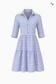 Hemdblusenkleid aus Baumwoll-Leinen in Streifenmuster mit Perlmuttknopfleiste, seitlichen Schlitzen und Krempelärmeln.