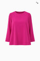 Dieses Oberteil zeigt eine fließende, leicht ausgestellte Silhouette und wirkt durch ihr reduziertes Design modern und vielseitig. Der Rundhals besitzt vorne einen kleinen Schlitz, der mit einem feinen Knopf geschlossen wird und so eine dezente Öffnung schafft. Der Saum ist vorne und hinten gerundet gearbeitet, wodurch seitlich eine offene, weich verlaufende Schlitzform entsteht. Die Krempelärmel sind mit einer breiten Absteppung am Abschluss versehen und unterstreichen den hochwertigen Look. Das Modell ist ungefüttert und kommt ohne Reißverschluss aus, wodurch es besonders leicht und angenehm zu tragen ist.
